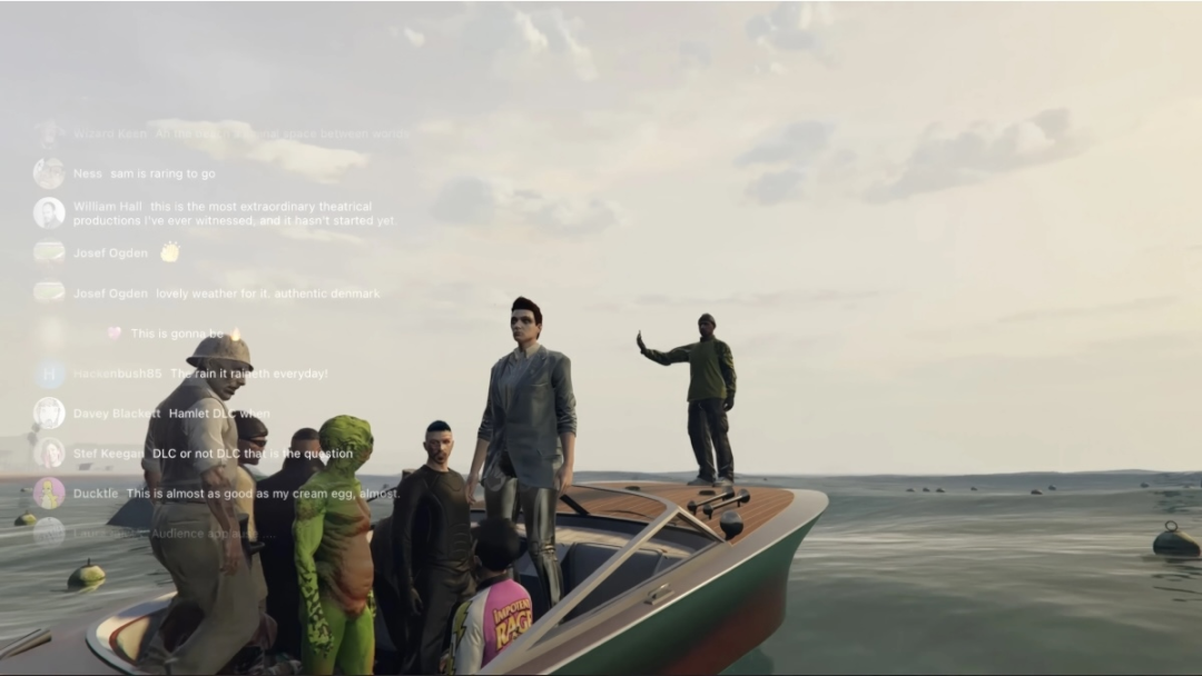 他们在游戏里说:“别打我们,我们在创作艺术作品。”结果有人直接把他们干掉。我觉得既有趣又戏剧化,还很感人。因为在真正的线上服务器里排演,你永远不知道接下来会发生什么,这种感觉非常独特。