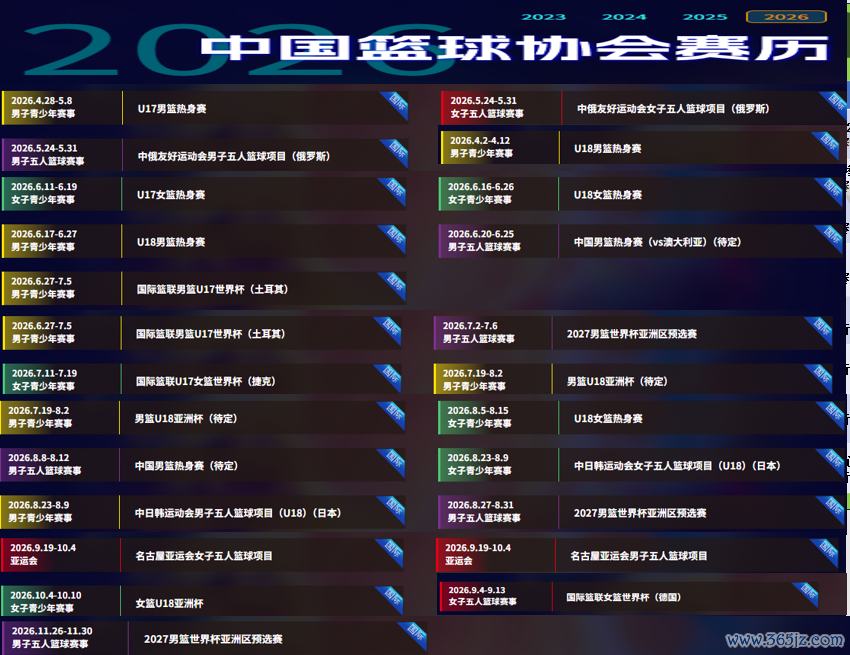 中国男篮正在冲击世界杯资格,中国女篮刚刚获得世界杯席位,还有多支U系列国家队也即将踏上亚洲或者洲际赛场,2026年中国五人制国家队篮球赛历如下。
