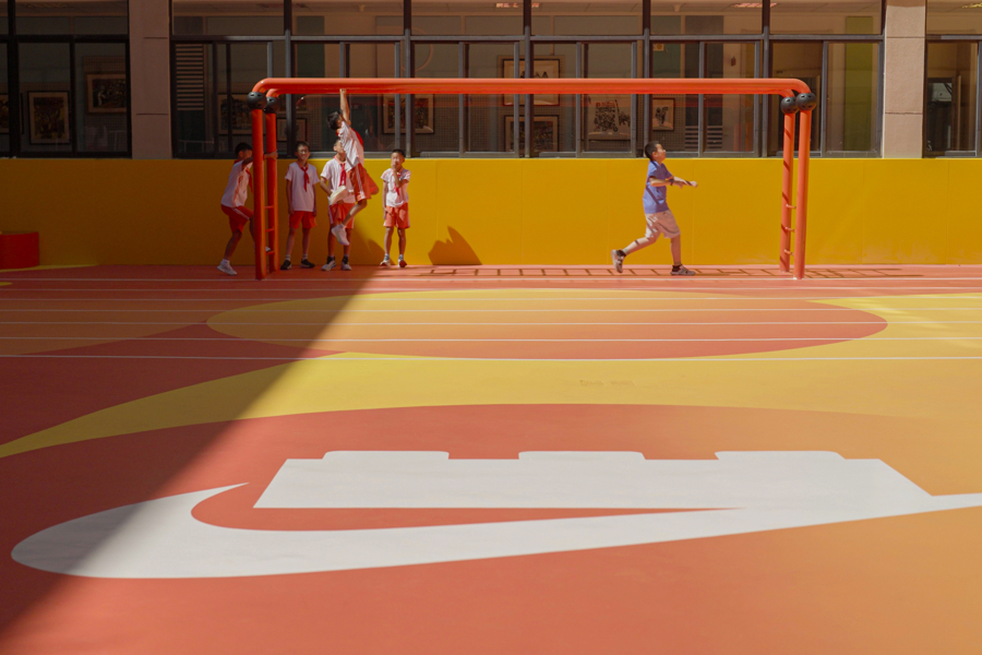 作为耐克和乐高集团合作公益项目的落地成果,这片运动场融合“儿童运动”“创意玩乐”“可持续发展”等理念,汇集多方合作伙伴的共同努力。相关设计师介绍,运动场整体结构融合“立体互动+安全环保”理念,兼顾不同年龄段小学生的运动需求与安全标准。设计师在场地规划中充分平衡“运动功能性”与“游戏自由度”,既符合专业运动场地标准,又保留了趣味互动的空间体验。