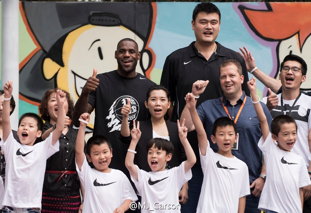 2015年,姚明、詹姆斯共同揭幕杨浦新江湾城社区篮球场。