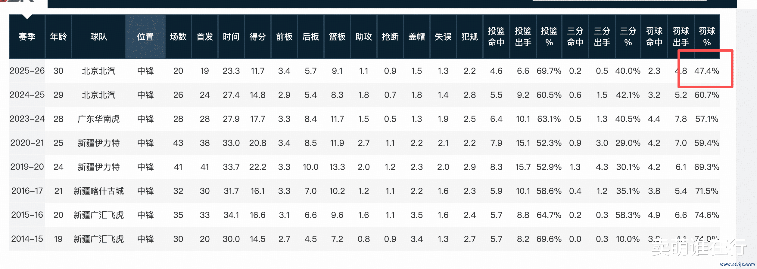 毕竟伤病多,消耗大等因素,可以成为竞技下滑的理由,但绝对不应该成为罚球命中率越来越差的借口。特别是对于一个曾经有稳定罚球命中率,如今罚球惨不忍睹的中锋来说,就是缺练。
